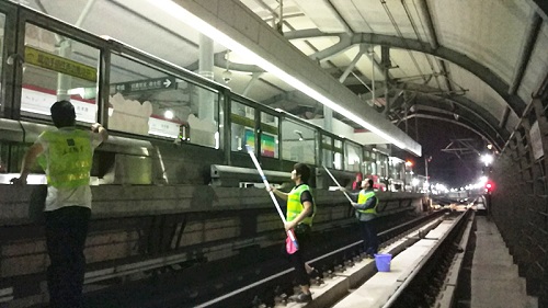 此次專項清潔工作主要對站內(nèi)電梯、站臺風扇及軌道外側(cè)不銹鋼和玻璃幕墻,以及站臺站廳內(nèi)各類標識牌進行清潔保養(yǎng),并在人流量大的重點區(qū)域和重點場所,使人工保潔與電動清潔車有效配合,加大巡回保潔次數(shù),鞏固提升車站環(huán)境衛(wèi)生質(zhì)量。