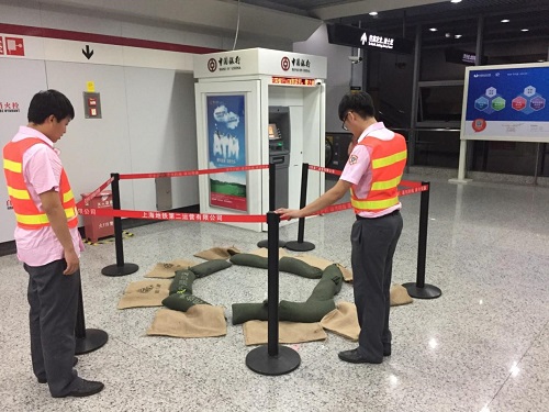 演練主要模擬在車站運(yùn)營期間強(qiáng)降雨、站廳出現(xiàn)不同程度漏水的情況下,車站啟動防汛防臺預(yù)案的情況。車站工作人員在發(fā)現(xiàn)情況后,第一時間利用沙袋、麻袋、刮水板等應(yīng)急物資對站廳漏水點(diǎn)進(jìn)行防護(hù),阻止其蔓延。同時密切關(guān)注客流情況,注意客流動態(tài),做好聚集在車站及出入口避雨乘客的引導(dǎo)工作。