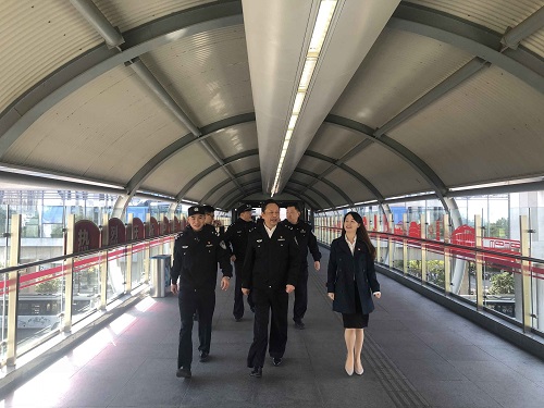11月9日上午,上海市公安局城市軌道和公交總隊政委陳鳴強一行至昆山軌道公司督導進博會安保工作,昆山市公交派出所所長胡道春、昆山軌道公司副總經理閔荷瓊陪同檢查。