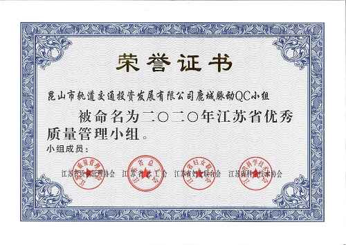 近日,昆山市軌道交通投資發(fā)展有限公司“鹿城脈動(dòng)”QC小組被江蘇省質(zhì)量管理協(xié)會(huì)授予“優(yōu)秀質(zhì)量管理小組”稱號(hào)。