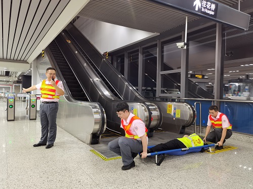 演練模擬在站廳東端下行中部扶梯發(fā)生一起乘客摔倒事件,車站立即啟動(dòng)非職工傷亡應(yīng)急處置方案。演練開始前,值班站長(zhǎng)張唯杰仔細(xì)講解演練重點(diǎn)及各崗位職責(zé),切實(shí)完成應(yīng)急處置方案的操作要求,加強(qiáng)員工遇到非職工傷亡事件時(shí)的實(shí)操能力和現(xiàn)場(chǎng)處置能力;演練結(jié)束后,值班站長(zhǎng)針對(duì)演練中存在的問(wèn)題進(jìn)行分析、指正,為今后工作中的突發(fā)事件打下扎實(shí)基礎(chǔ)。