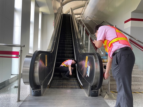 為進一步提升員工突發情況下的應急處置能力,軌道公司于6月26日在車站組織開展自動扶梯客傷預案演練。