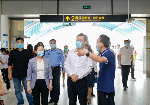 徐華東實地查看車站現場,詳細了解假期首日地鐵運行狀態、值班值守及疫情防控工作落實等情況。他指出,上海軌道交通11號線昆山段作為跨省市軌道交通線路,假期跨省出行的人流量較大,要嚴格落實體溫檢測、進站查驗核酸報告等各項措施,以最嚴密的措施防控疫情風險。